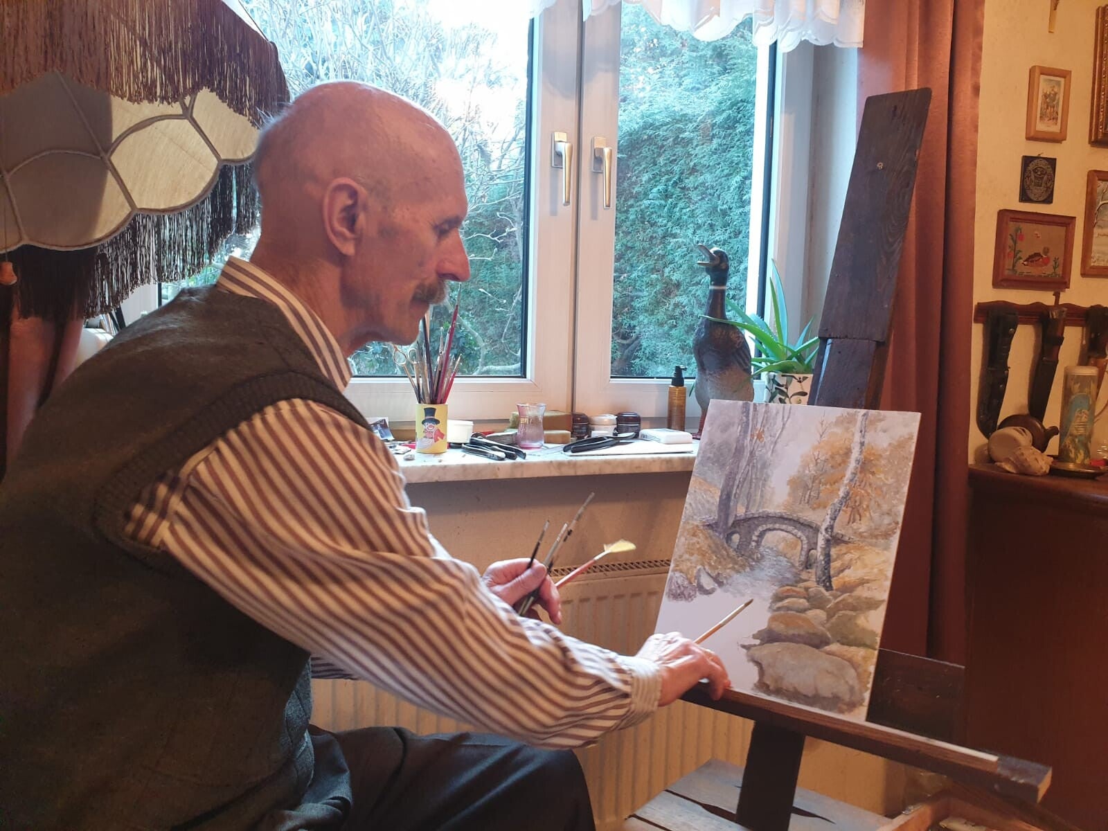 Wielu z nas zna Tadka nie tylko jako myśliwego, ale również jako utalentowanego malarza. W zimowych miesiącach, w swoim warszawskim atelier, tworzy obrazy przedstawiające dzikie zwierzęta i pejzaże przyrody. Jego sztuka, podobnie jak łowiectwo, tchnie szacunkiem do natury. Tadek to również zapalony ogrodnik – z wykształcenia ogrodnik – a także wędkarz. Często można go spotkać nad jeziorami i strumieniami naszego łowiska. Złowione ryby trafiają potem do kuchni Jadwigi, która przygotowuje z nich znakomite potrawy.